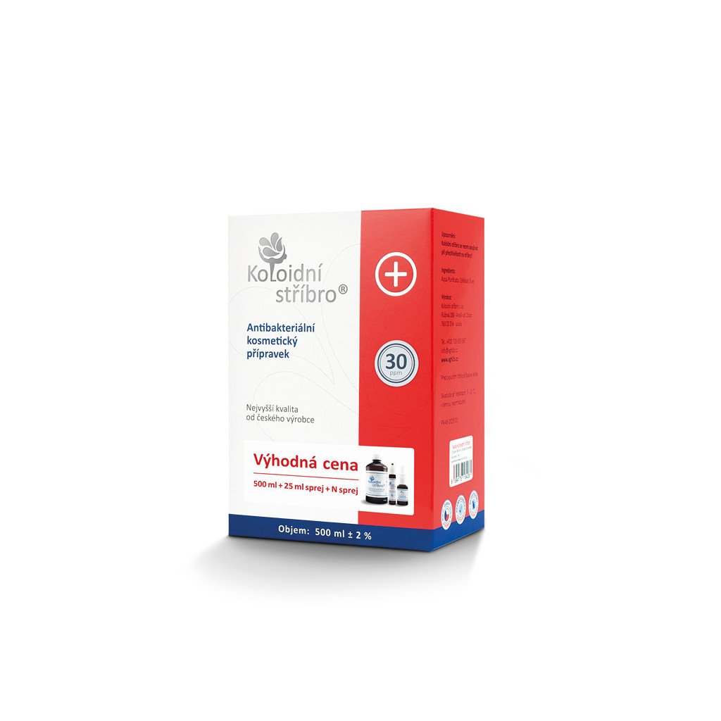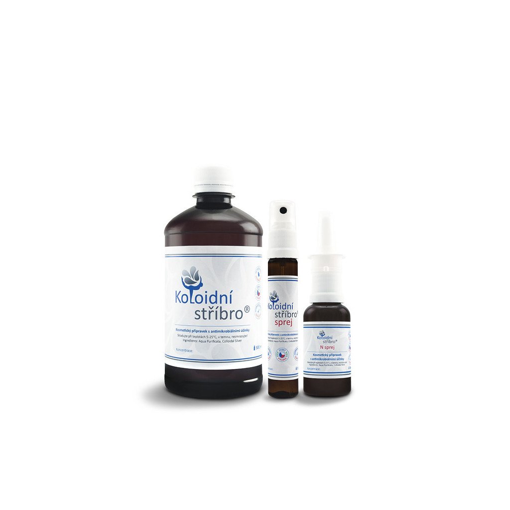 Koloidní stříbro 500 ml + 25 ml sprej + 30 ml N sprej 30 ppm