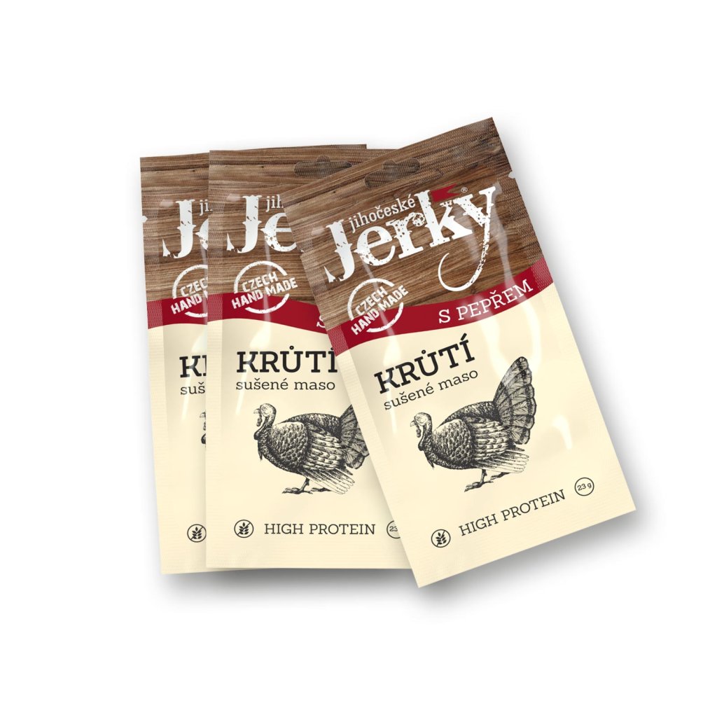 🌱 Zajímavosti: sušené maso z krůty je oblíbené hlavně pro svou jemnost a nižší obsah tuku. V kombinaci s pepřem vzniká snack, který chutná čistě, přirozeně a přitom má šmrnc.