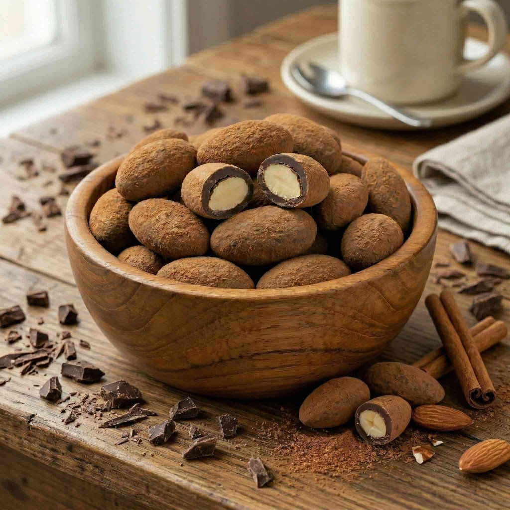 * Zajímavosti: Spojení mandlí, čokolády a skořice má hlubší kořeny, než se zdá už ve starověké Persii se mandle máčely v medu a posypávaly vonnými kořeními jako byl kardamom či skořice. V moderní podobě se tato kombinace stala oblíbeným pohoštěním v období svátků, kdy propojuje křupavost, jemnost i hřejivou vůni do jedinečného zážitku pro všechny smysly.