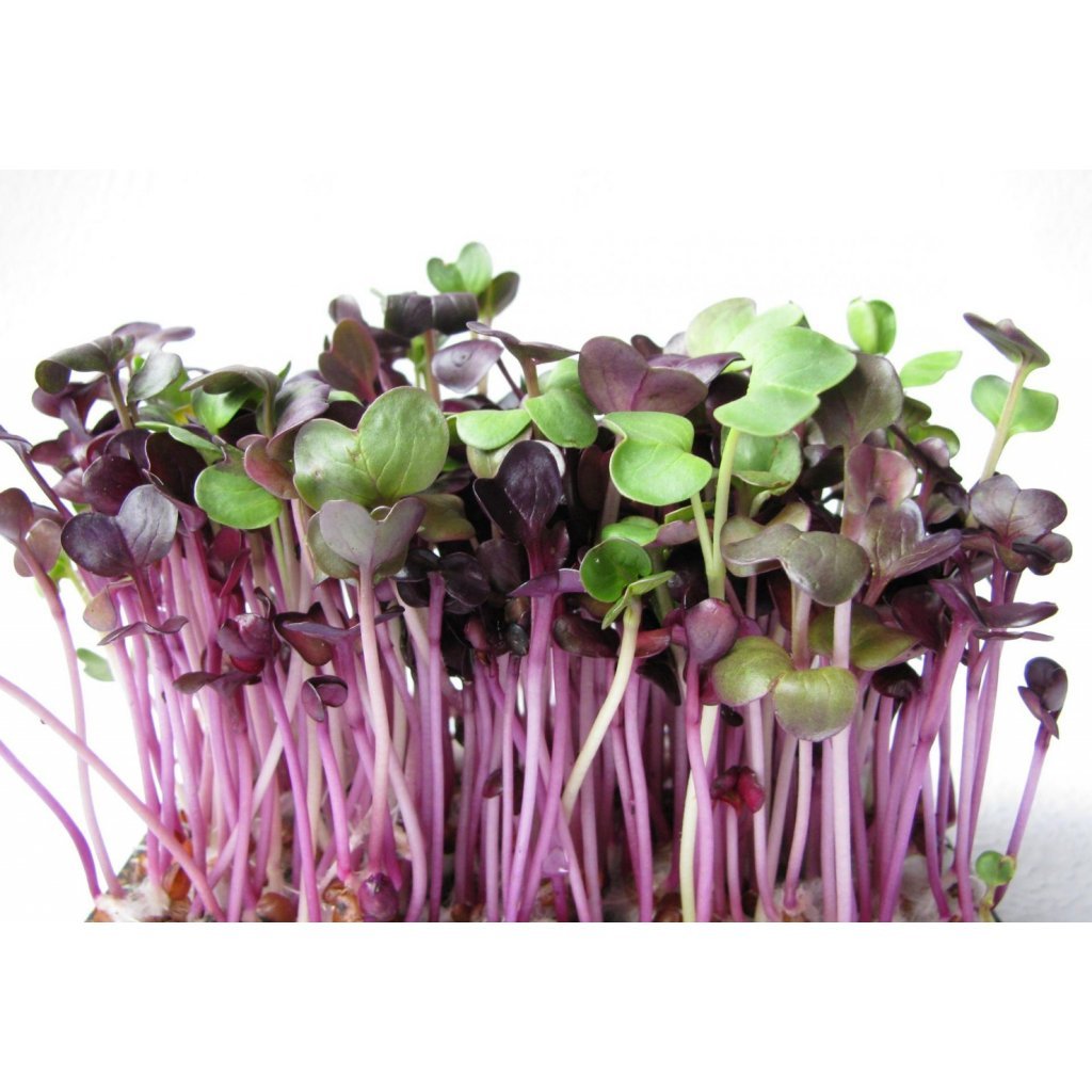 🌱 Zajímavosti: ředkvička byla vždy ceněna pro svou intenzivní chuť a rychlý růst. Odrůda Red Purple je moderním šlechtěním klasické ředkvičky – vyniká svou purpurovou barvou, která se přenáší i do výhonků, a zároveň si zachovává tradiční štiplavou chuť. Při klíčení vynikne její přirozená krása i síla – na pár centimetrech výhonku máte všechno, co na ředkvičce milujete, ale v ještě jemnější a koncentrovanější podobě.
