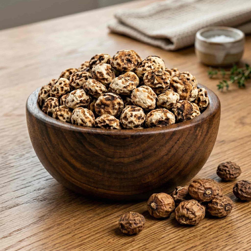 * Zajímavosti: tygří ořechy byly jednou z prvních plodin pěstovaných lidmi, archeologické nálezy ukazují, že je konzumovali už starověcí Egypťané před více než 4 000 lety. Dokonce se našly i v hrobkách faraonů jako cenná potravina na „posmrtnou cestu“.